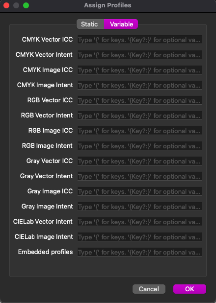 Input Components as DB, JDF or Hotfolder in combination with XML. These types of input can have /UserData elements in the by Workflow generated Job.xml. Job.xml is available in the UI of Workflow. Keys actually always refer to the elements in the /UserData. In this case you have to set the Value of the Key yourself like {Key:YourElementInUserData}. It's also possible to use a '?' behind Key like {Key?:*}. This way it will use the Variable if available otherwise it will apply the Static value.