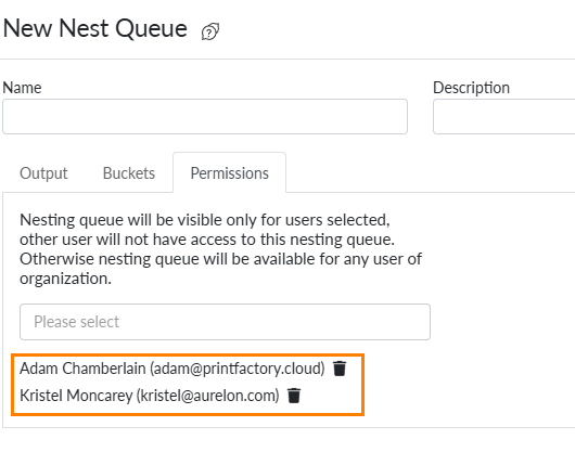 If users are added here, only those users can view this Nest Queue: