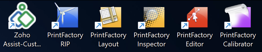 7. You will see the icons installed on the desktop for the PrintFactory applications. Depending on your license or product, you will be able to use them.