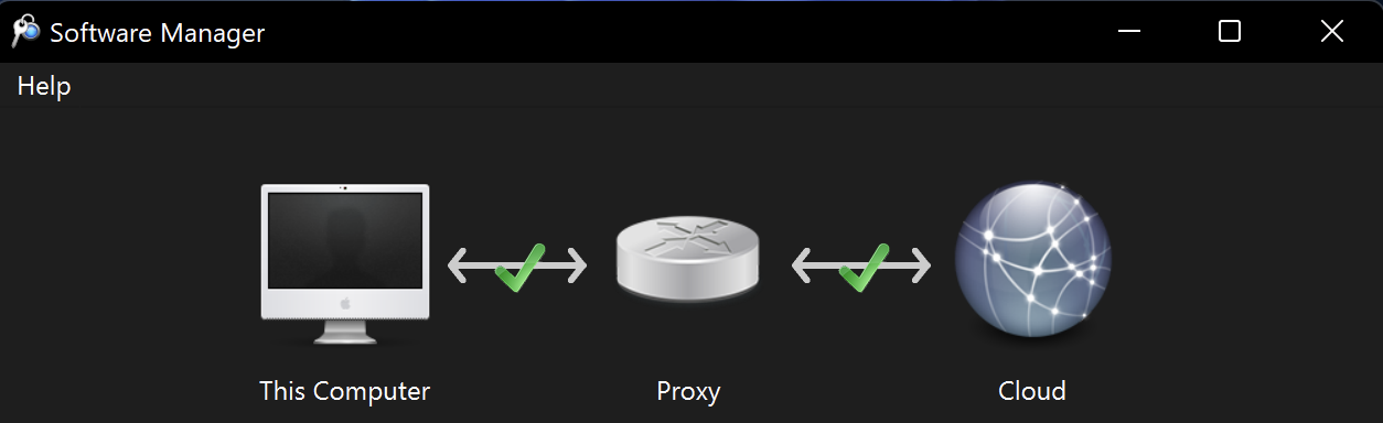https://app.printfactory.cloud/ and use this information to validate the license. It will then open the Software Manager with two green checkmarks, indicating that the software is installed and licensed.