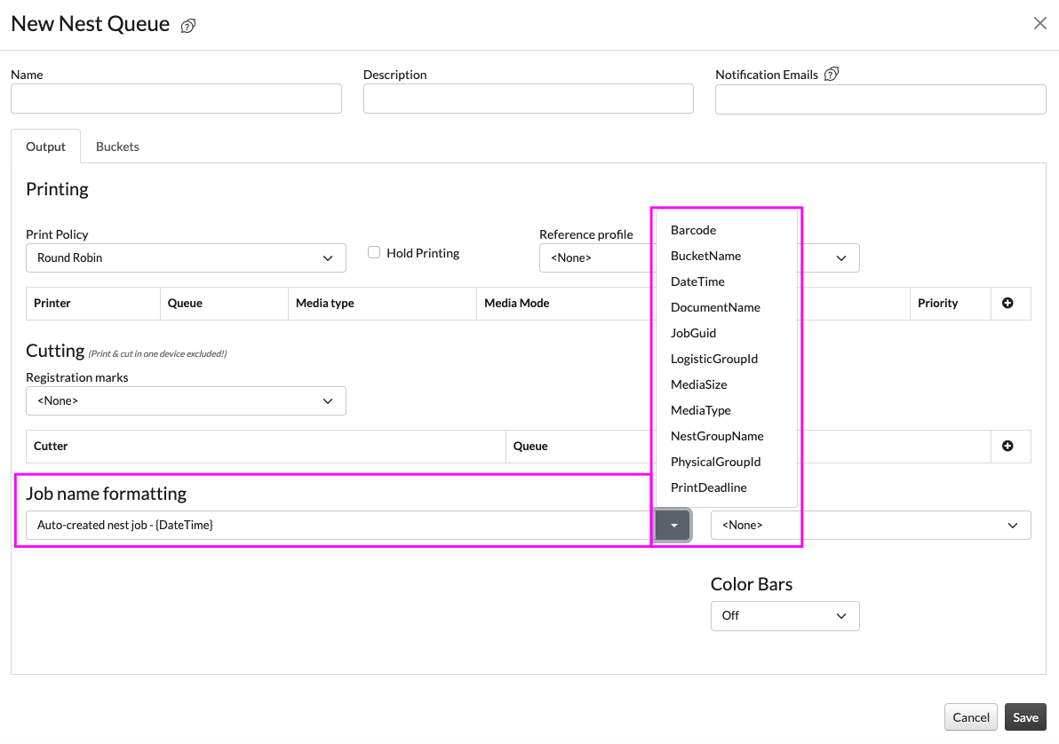 Color bars can also be added to Cloud nesting Jobs. They can be added either on one or both sides of the nested job and define the width of the total bars, similar to the Layout function and The difference with the Layout feature is that Color bars ...