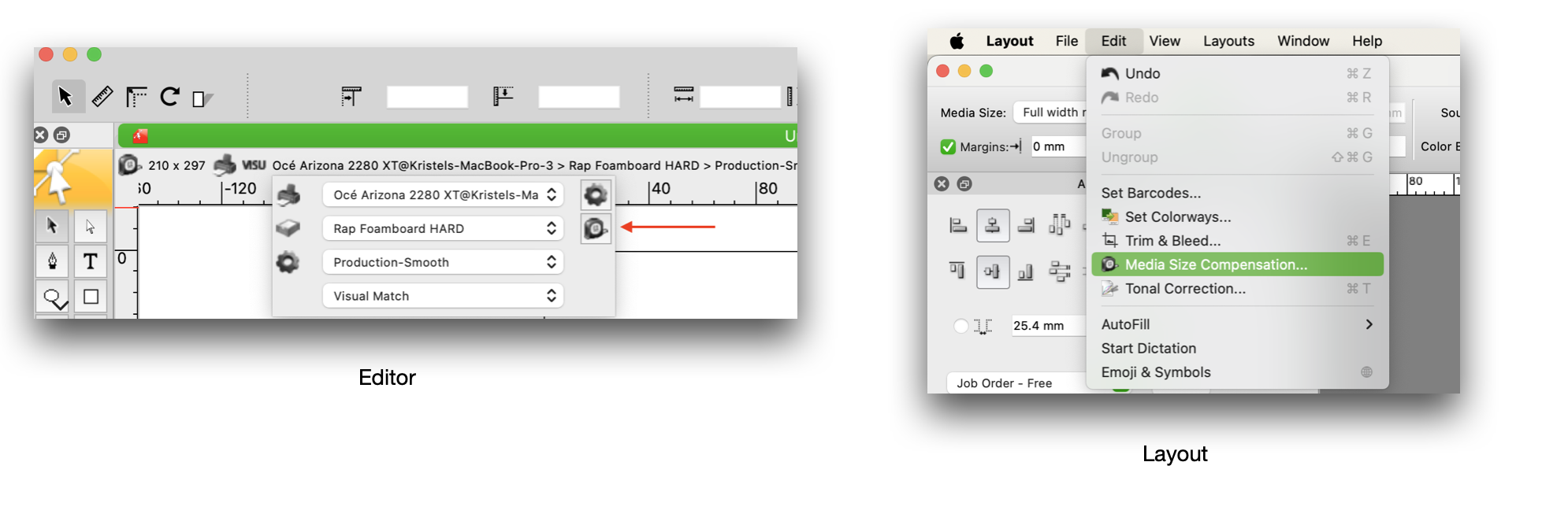Media Size Compensation Media Size Compensation must be configured on the PC where the RIP is installed, with the target printer installed on that RIP. SmartWorking Conflict Media Size Compensation is not available when SmartWorking is enabled. If ...