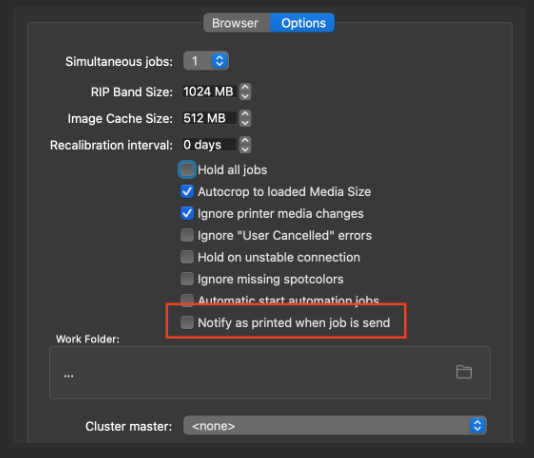 The new “Notify as printed when job is send” option ensures that PrintFactory still records your production data accurately, even when printer feedback isn’t available.