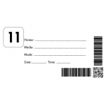 | 11. Print Media Mode information is to make basic notations about the print. Also backed with a spot White layer and with Barcodes in horizontal and vertical and QR code to show resolution line accuracy. | 12. PANTONE° patches have no embedded input ICC and should print to the maximum mapped LAB values using the gamut of the printer ink & media. | 13. Color transition strip to assess multi-color combinations at a glance. |