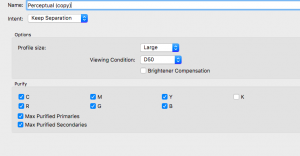 Это не рендеринг-интент как таковой, а инструмент рекалибровки, используемый, например, в керамической промышленности для перехода с одной производственной линии на другую, сохраняя черный (K) без изменений и корректируя только CMY. Создается дополнительный профиль, который сохраняет разделение цветов и генерацию K нетронутыми, а CMY рекалибрует. Другие промышленные применения, где "Сохранение разделения" (Keep Separation) может быть полезным, включают производство декоративной бумаги, стекла и т. д.